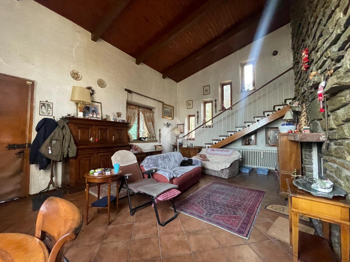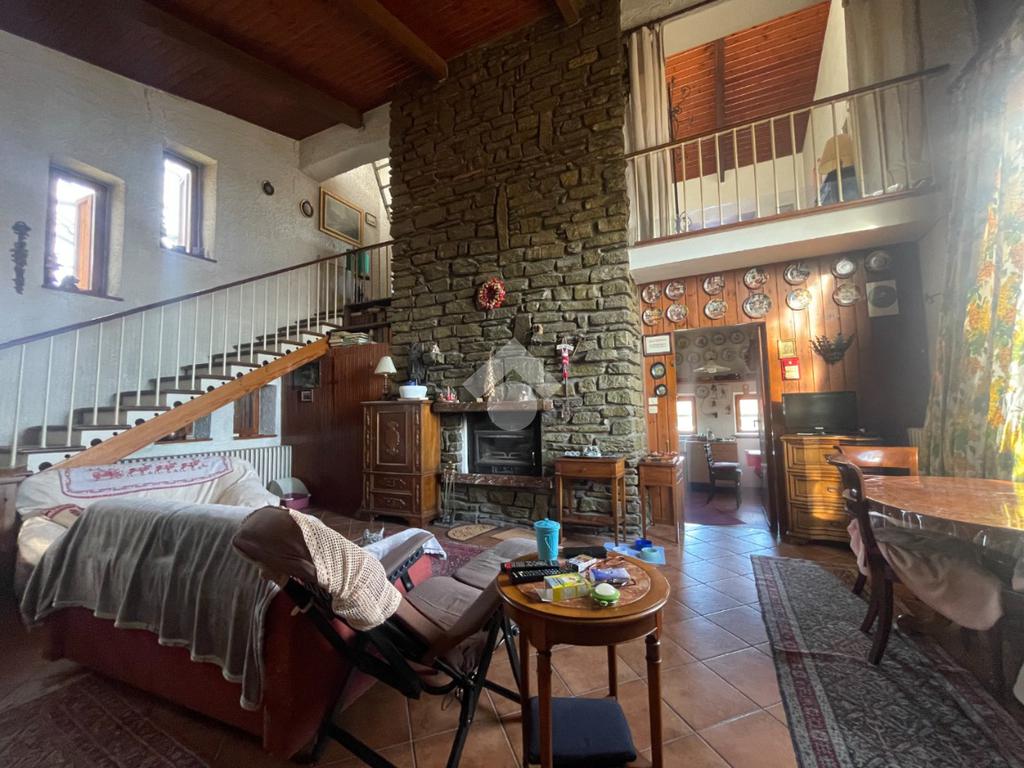 La casa principale, rivestita in pietra e con tetto in legno a vista, si apre da un porticato su un salone di grande impatto, con altezza a tutta casa, travi in legno a vista e un imponente camino ventilato, con bocchette nelle varie zone della casa, in pietra che si sviluppa dal pavimento fino al tetto. Una balconata aperta e una scala a vista collegano armoniosamente la zona giorno alla zona notte. Il piano terra è composto da cucina abitabile, bagno di servizio e un locale versatile utilizzabile come camera, studio o cabina armadi.