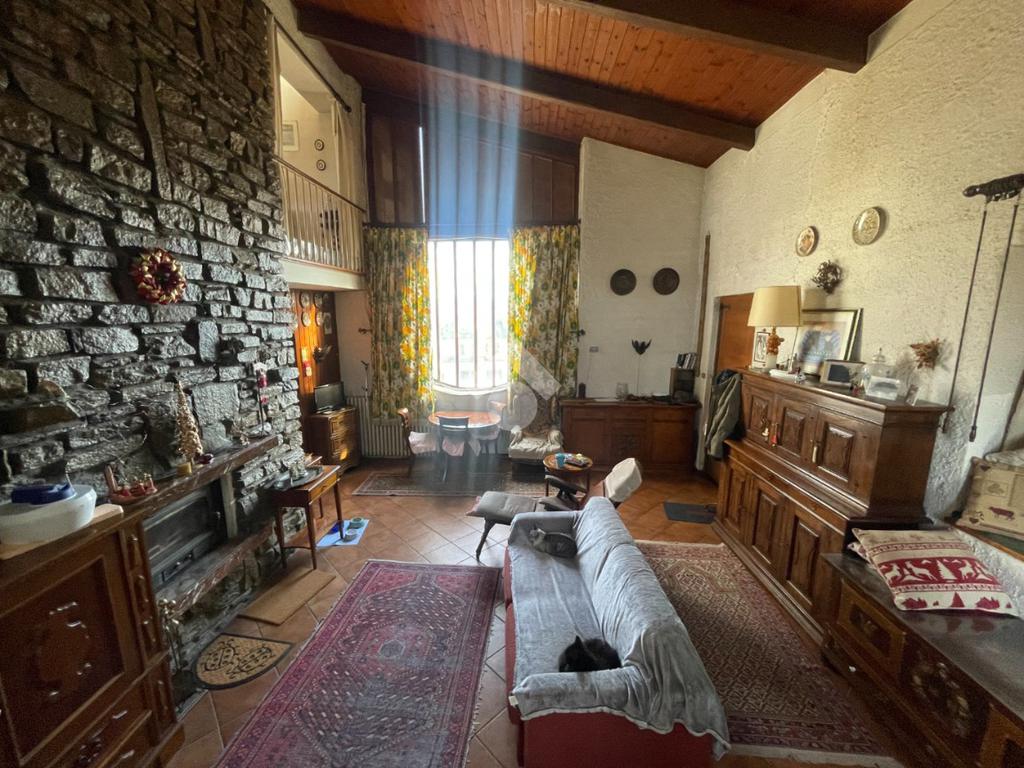 Al piano superiore, raggiungibile dalla scala del salone, troviamo una cameretta, un bagno e la camera padronale, arricchita da balconata affacciata sul salone e da un camino funzionante in camera, dettaglio di grande charme.